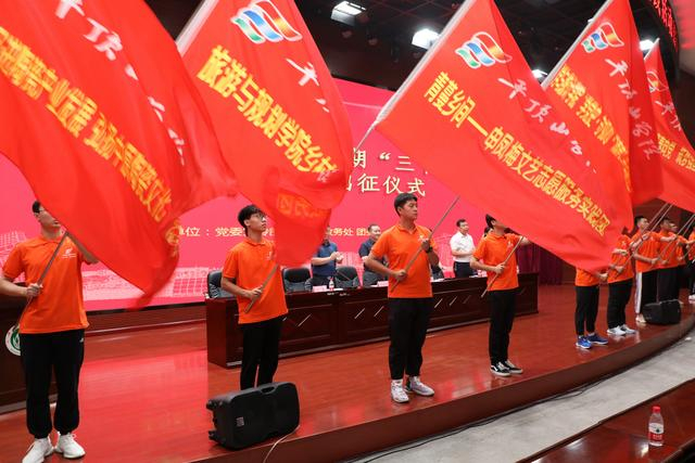 启动仪式上,教师代表“三下乡”社会实践活动的指导老师作发言。学生代表志愿者发言并带领全体下乡志愿者进行宣誓。在铿锵的誓言中,与会领导为各服务团授旗,并宣布平顶山学院2021年暑期“三下乡”社会实践服务团队出征。