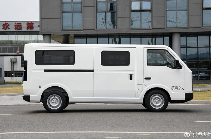 车身侧面也是复古化的造型轮廓,使用了平直方正的线条。车门的窗框以及后侧窗的窗框都是宽厚的造型,看上去很个性,另外新车使用了单侧侧滑门的设计。尺寸方面,新车的长宽高分别为4900/1780/1990mm,轴距为2865mm。