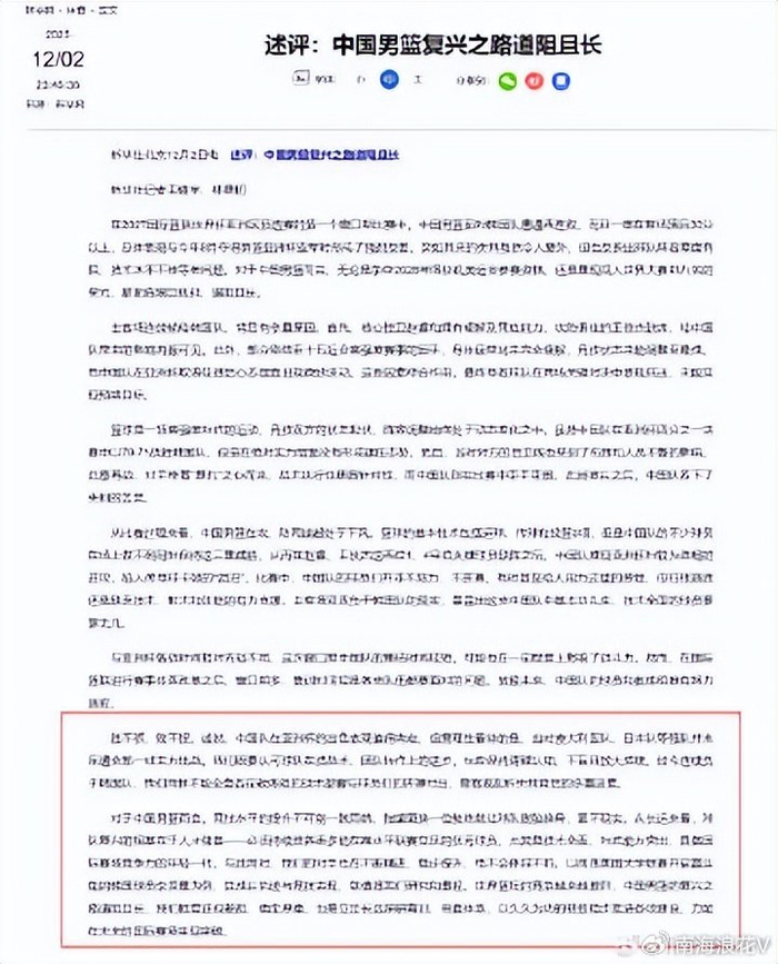 文章认为,对中国男篮而言,竞技水平的提升不可能一蹴而就,指望更换一位教练就让球队脱胎换骨更不现实。官媒的弦外之意十分清楚,那就是现在即便连输韩国两场,也不宜更换主教练——郭士强。