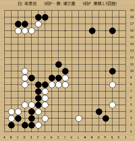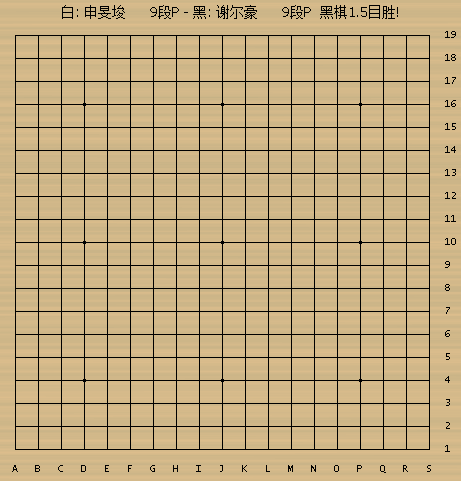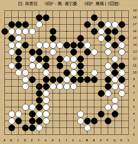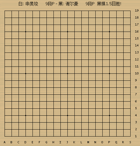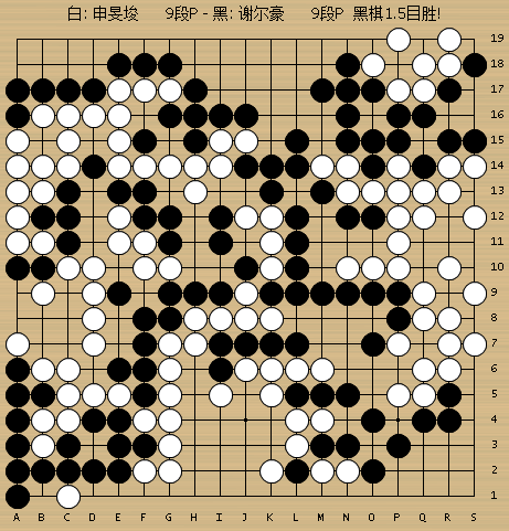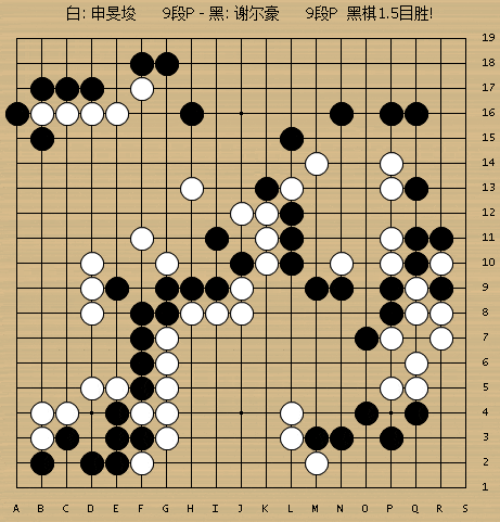 双方把官子全部收完,黑棋盘面8目,谢尔豪1目半胜出。