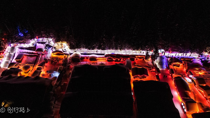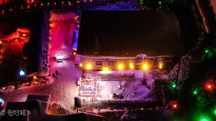 就连木栅栏都像镶上金边一样,一片红彤彤的景象,充满了迷人的魅惑。茅屋檐上垂下的雪舌、雪帘、雪蘑菇等自然景观,仿佛童话世界里的小精灵都在藏在那里。梦幻的童话色彩,让人忍不住记录下这美好的画面,莫名地穿越回童年时期的纯真美好,宁静而祥和。