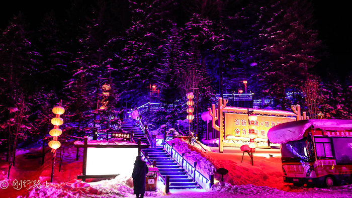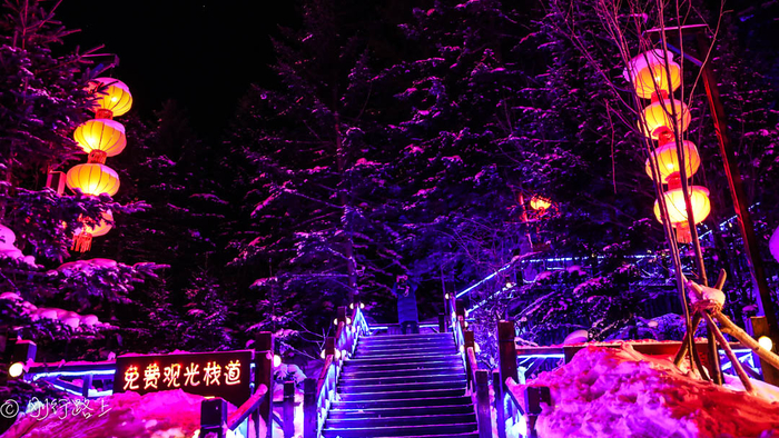 雪乡给人无数的遐想,棒槌山观光栈道夜景就像是完成来遐想的空间,用真实景致体现出这种大自然赋予,经过人类艺术创作而带来的美。