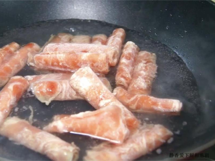 水开后加入肥牛,变色即可捞出,