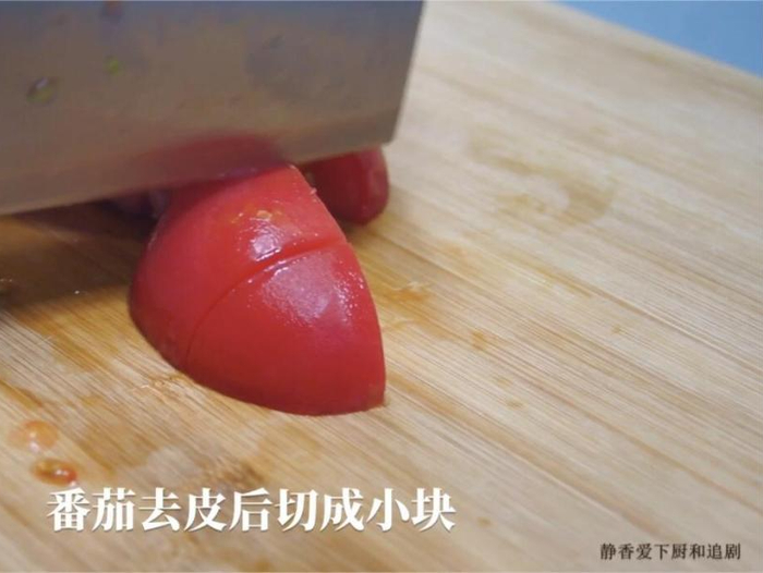 去皮番茄切成小块。