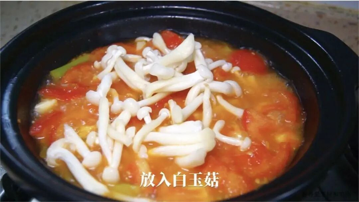 焖好后加入白玉菇,再焖2分钟。