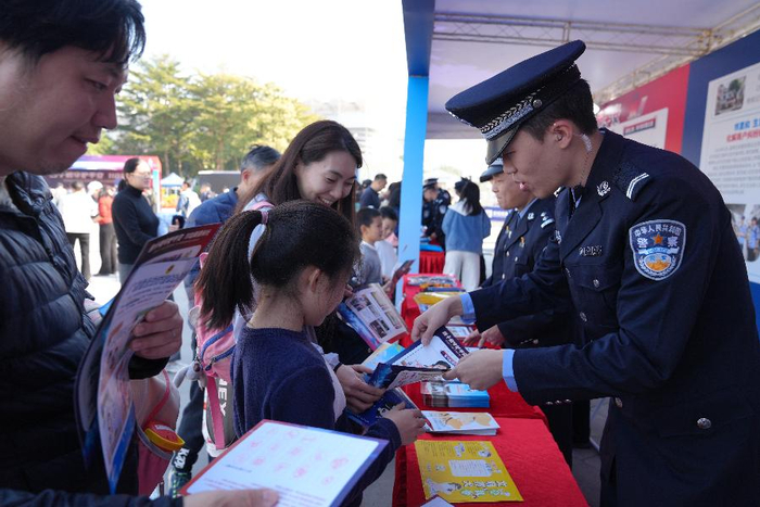 各警种在咨询体验区耐心讲解反诈、禁毒、户政、交通等安全知识