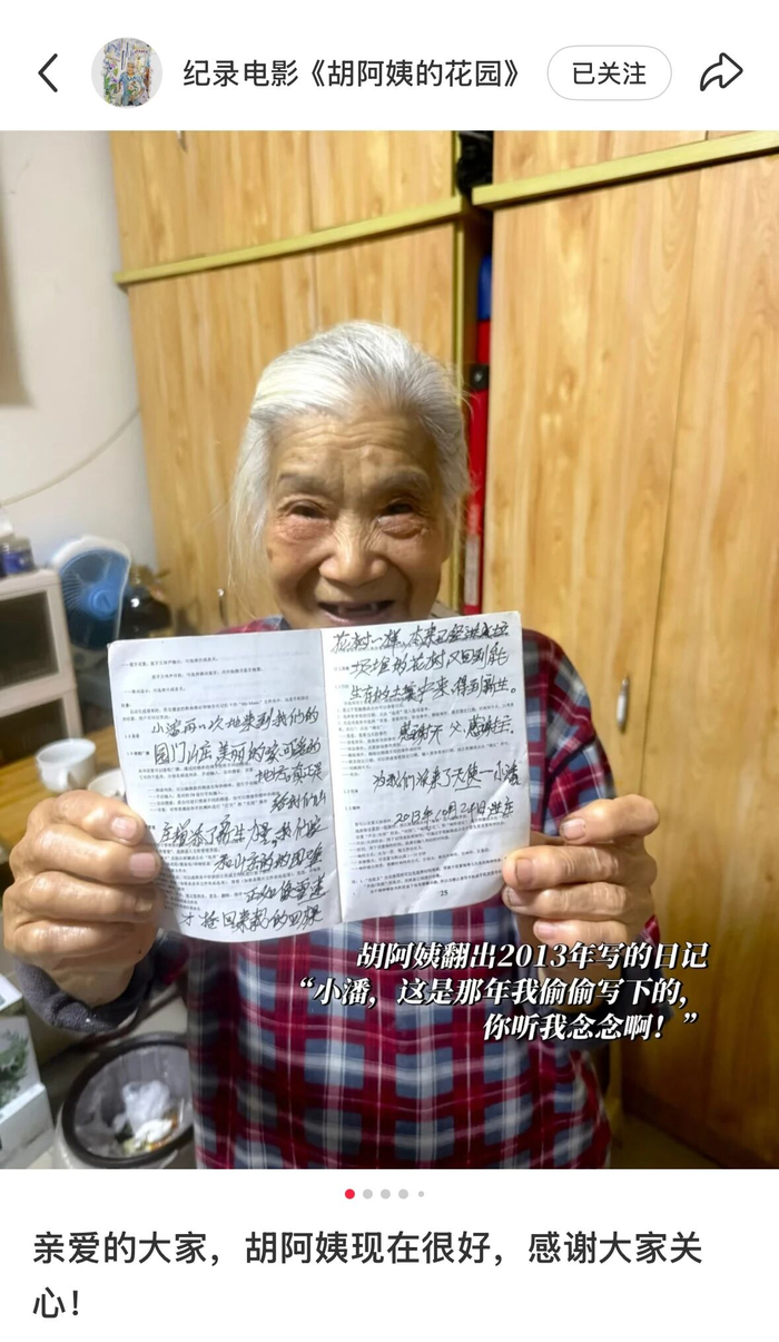 胡阿姨拿出她的“日记本”。(图/纪录电影《胡阿姨的花园》)假如生活欺骗了你