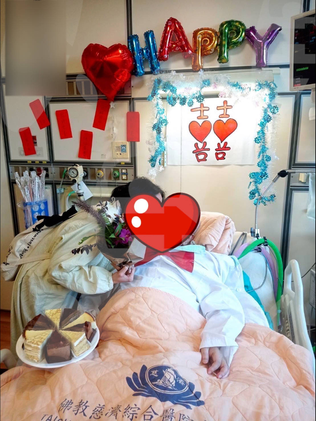从婚礼照片中,不难看出林靖恩与李坤城的仪式感,病房内贴了大红双喜,还有简单的彩色气球装置,气氛很温馨,两个人的互动也非常有爱。林靖恩还把手捧花扔给了在旁的医务人员,脸上挂满了幸福的笑容。