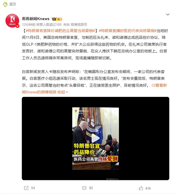 #特朗普官宣降价减肥药企高管当场晕倒#