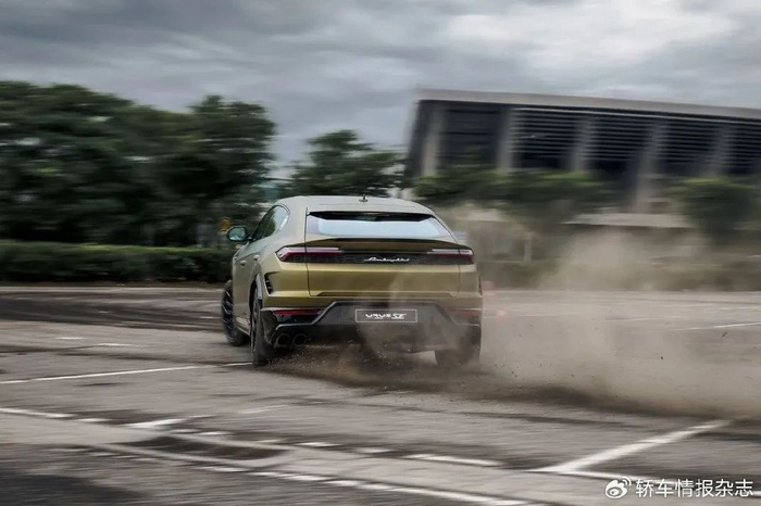 车身侧面,能够看到加油口和充电口,这也许是唯一在车身侧面和Urus的设计不太一样的地方。尾部设计,至少远观就能在第一时间看出这是一台兰博基尼出品的SUV。