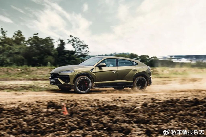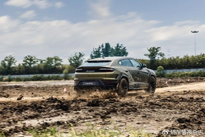品牌方还安排了一次简单的场地越野体验,以此展示Urus SE在烂路上的表现,对兰博基尼的车主来说,这算是他们能开这台车去的比较极端的野外环境了,空气悬架在越野模式下,底盘被抬高了75mm,这样就不用担心底盘被刮蹭了,车身的泥泞证明了这台超跑SUV除了快之外,也能拥有一定的通过性。