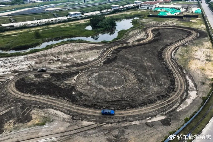 这次的试驾主要被分为三项,越野体验、漂移绕桩以及公路驾驶。赛车场外宽阔的停车场区域,洒过水的整场地上简单码放了一些桩桶,我们被要求在这片场地中完成漂移绕桩和弹射起步的任务。