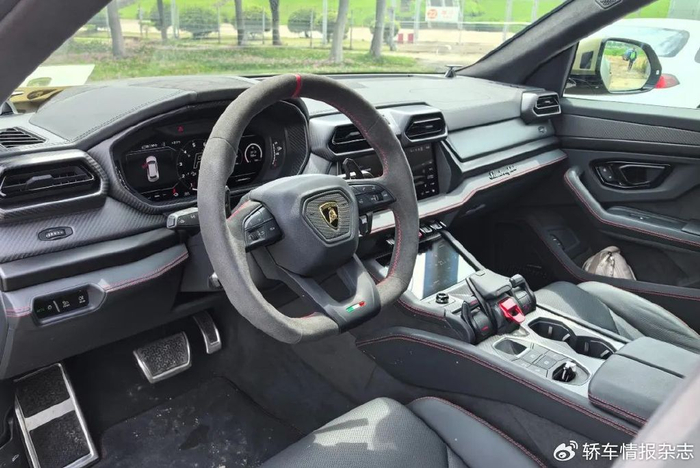 在细节部分,Urus SE也有着精致的细节和奢华的用料,例如车内大量采用碳纤维饰板,头枕带有兰博基尼Logo的刺绣。当然,只要有充足的预算,车内的选装能最大程度满足用户的需求。