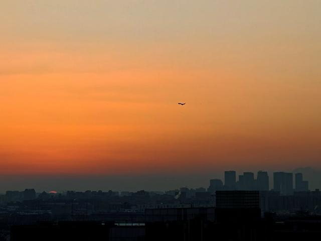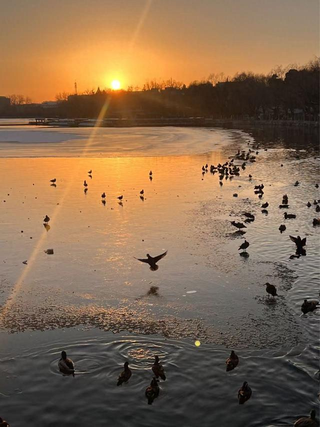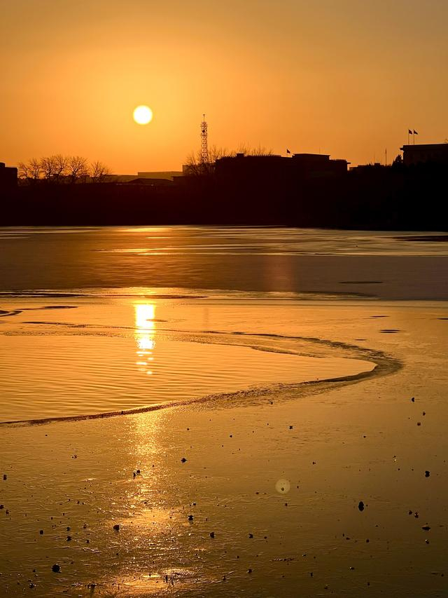 北京雪后落日,盛满冬日蜜糖色的浪漫