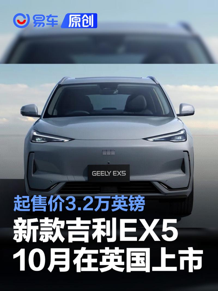 易车讯日前据相关媒体报道,吉利宣布其EX5全电动SUV将于10月在英国上市,售价3.19-3.69万英镑(约合人民币30.93-35.78万元)。当地媒体表示,新车将与斯柯达Enyaq、起亚EV6、现代Ioniq 5竞争。