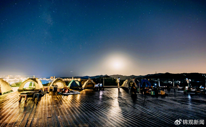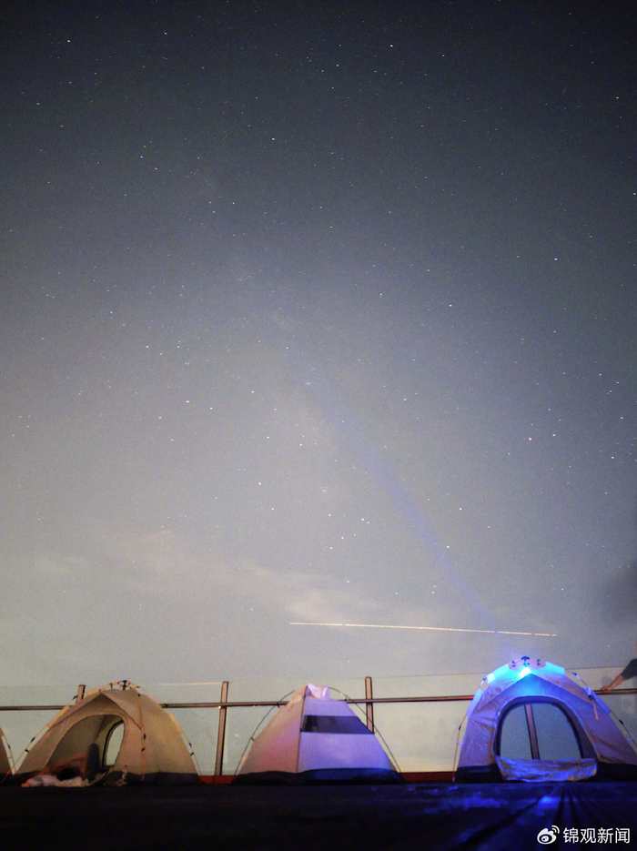 20时,在三楼的观景平台,记者看到,不少市民游客已在此搭起了帐篷。“两天前看到活动招募的消息,我们第一时间报了名,还特意买了帐篷,想要沉浸式体验观星乐趣。”赵女士向记者表示,“就想带孩子亲身感受一下星空的魅力,这可比在书本上看图片有意思。”