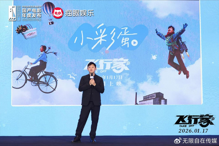 同样令人期待的还有电影《飞行家》,这部由导演鹏飞执导,根据双雪涛同名小说改编,蒋奇明、李雪琴领衔主演,入围东京国际电影节主竞赛单元的佳作将于2026年1月17日上映。导演鹏飞在现场分享了将“东北文学”搬上银幕的创作初心,并深入解读了蒋奇明、李雪琴与片中角色的高契合度。此外,发布会还播放了两位主演的问候视频,而鹏飞导演更是准备了由鹏飞、双雪涛、蒋奇明、李雪琴四位主创亲笔签名的原著小说赠予现场幸运观众。现场精彩的讲述与互动让观众对影片愈发期待。