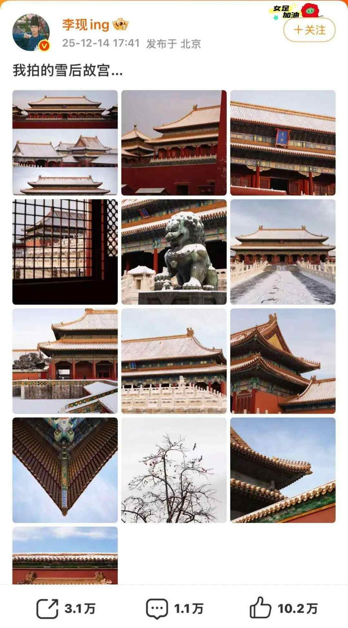 李现拍的“雪后故宫图”出街!网友直呼“终于等到了”:居然没有攒动的人头,也没有穿古装的“娘娘”和“公主”
