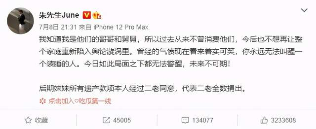 如果说虚假人设崩塌,过度消费逝者是谣言的话,那么他第一个就要告的,就是亡妻朱小珍的哥哥。