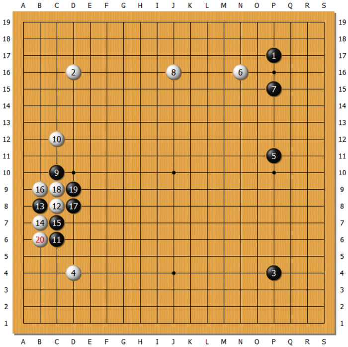 可是,接下去19的盖被王老批评“不好,应该在20位挡下来。17和20交换,黑损”。怎么会损呢?