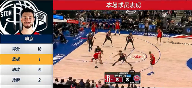 全场比赛申京30分钟,11中6,罚球10中7,拿到19分5助攻1篮板2抢断5失误,命中率54.5%,这是本赛季申京第二场1篮板,但第一场是因为他4分钟退场,申京吞下耻辱一战。