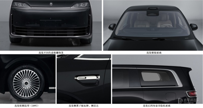 车身侧面非常修长,将会配备“大饼式”轮毂,车尾采用类似尊界的那种贯穿式灯带,晶钻点缀,智界的英文字母悬浮在其中,尊贵感非常明显。此外,新车还可以选装不同色前格栅饰条、镀银玻璃、轮辆造型、侧翼子板标牌、侧雷达、后四角窗非隐私玻璃等。