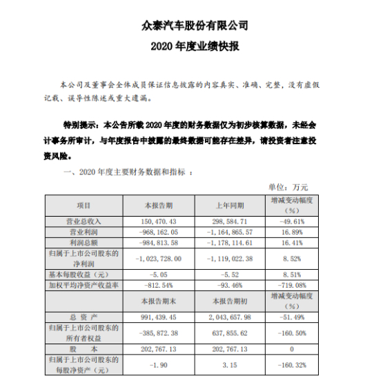 4月14日,众泰汽车对外公布2020年度业绩快报,全年营收仅为15.05亿元,归属上市公司股东的净利润亏损高达102.37亿元,集团负债达到38.59亿元。并且下属各大汽车生产基地均处在停产、半停产的状态,整车销售业务收入基本为零。所以不仅是这次的上海车展,相信已经日薄西山的众泰汽车连下一届上海车展也赶不上了。