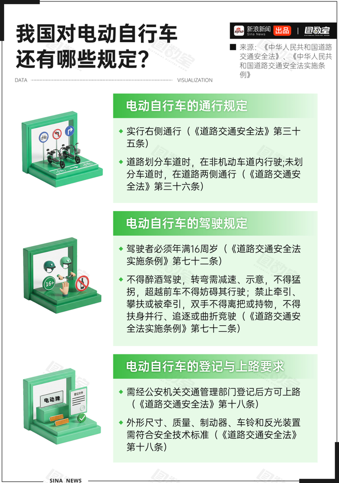 我国是电动自行车大国。据统计,我国电动自行车社会保有量高达3.8亿辆,相当于每4个人就拥有一辆。电动自行车与当前机动车保有量的比例已达1:1.2。除了上述新规,国家对电动自行车通行、驾驶、登记和上路都做了详细的规定。