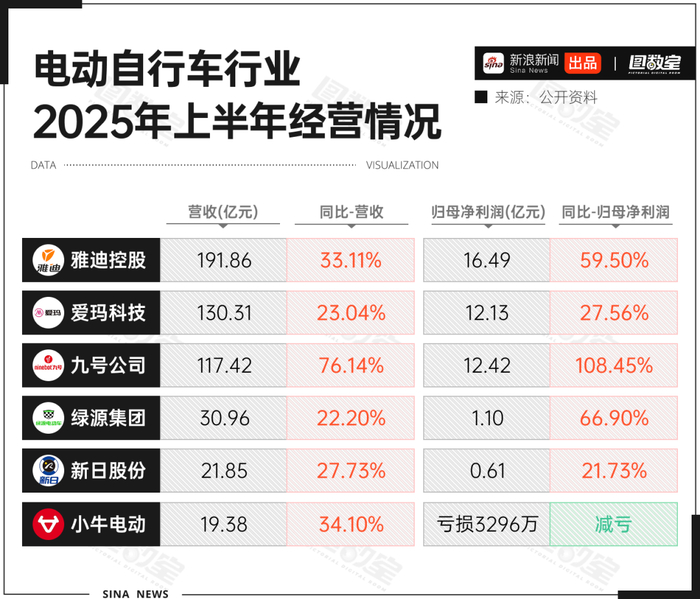 从行业数据看,这一效应集中体现在企业业绩中,雅迪、爱玛、九号、绿源、新日、小牛的营收都大幅增长。