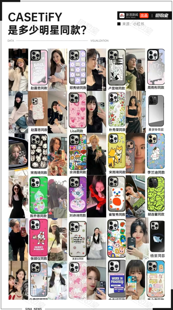 从顶流偶像Lisa,到佘诗曼、刘诗诗、杨紫、赵露思、宋雨琦,CASETiFY几乎覆盖了不同圈层的审美与粉丝群体。