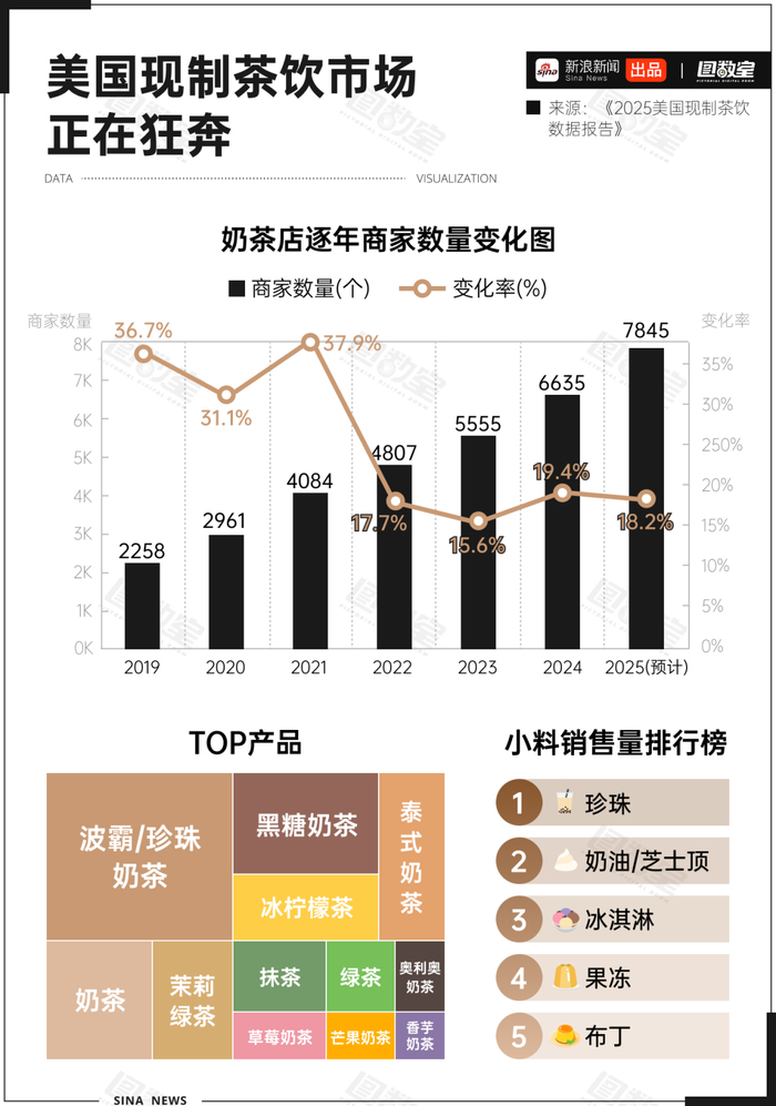 在地球的另一边——美国,则是有待开发的新蓝海。这里不仅有庞大的消费基数,现制茶饮市场也在急速狂奔。