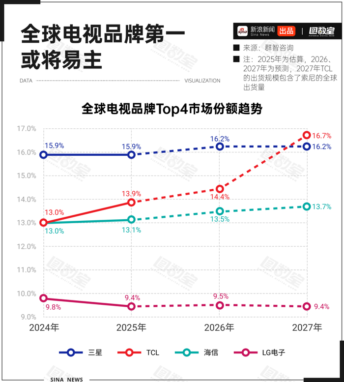 根据测算,若双方合资公司于2027年顺利运营,合并市占率有望达16.7%,或将超越三星(16.2%)跃居全球第一。这不仅将重塑数十年来的电视竞争格局,也将是中国品牌首次登顶全球市场。