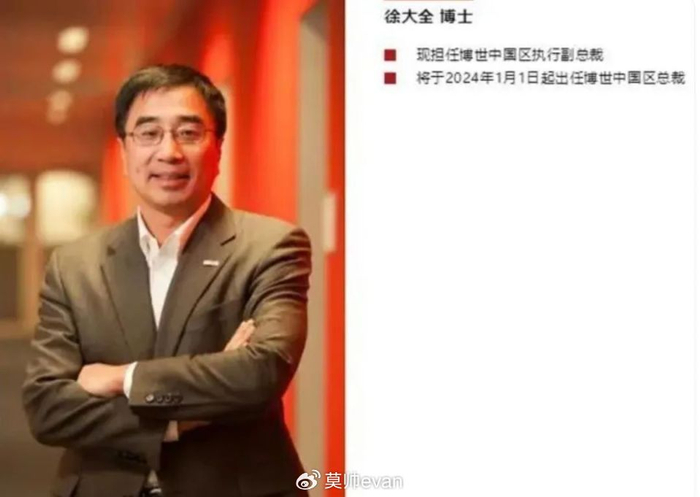 汽车事件一:徐大全接任 博世中国区总裁陈玉东退休