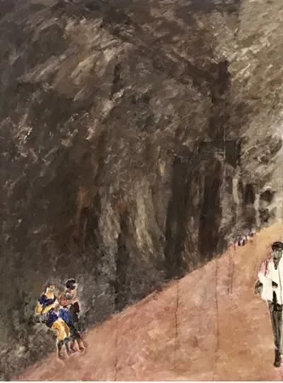 The Subway Hall, Mixed-Media, 36” *48”, 2020《地铁大厅》91*122 cm综合材料 2020年