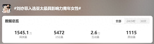 11月5日,2025年亚太地区最具影响力青年女性榜单正式发布,刘亦菲、迪丽热巴等中国女演员荣誉登榜。榜单一经发布就迅速冲上热搜。
