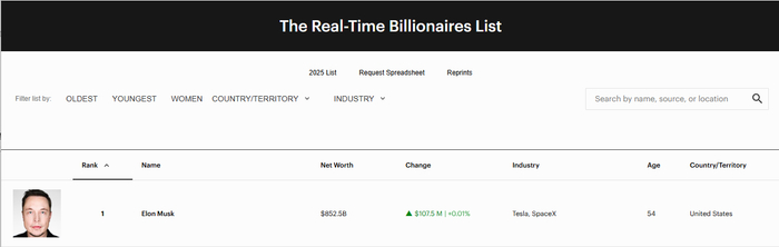 据《福布斯》估算,SpaceX与xAI合并这一交易使马斯克的财富增加了840亿美元,这也使马斯克成为史上首位身价突破8000亿美元的富豪,达到创纪录的8520亿美元。短短四个月内,马斯克已达成四项重大净资产里程碑。2025年10月特斯拉股价飙升后,他成为史上首位净资产达5000亿美元的人。12月15日,随着SpaceX估值从8月的4000亿美元跃升至8000亿美元,马斯克成为史上首位净资产突破6000亿美元的人。几天后,特拉华州最高法院恢复了他被下级法院于2024年撤销的特斯拉股票期权,使其成为全球首个净资产达7000亿美元的富豪。