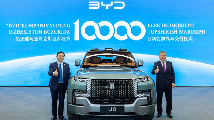 2024年1月25日,乌兹别克斯坦总统米尔济约耶夫率代表团访问比亚迪全球总部,王传福董事长代表比亚迪向米尔济约耶夫总统交付仰望U8(配置|询价),该车型也成为总统的座驾。在访问过程中,米尔济约耶夫总统现场观看刀片电池针刺实验、仰望U8原地掉头功能演示,对比亚迪的核心技术实力给予高度评价。比亚迪乌兹别克工厂的建成与投产,既是中乌深化经贸合作的重要成果,也为乌兹别克斯坦汽车产业升级与绿色发展注入强劲动力。