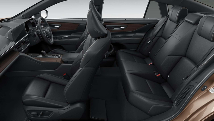 全新一代皇冠家族首发于2022年7月,除了轿车版本和已经在国内上市的皇冠SportCross(配置|询价)外,还有两款SUV车型。轿车版本依旧采用了历代丰田皇冠经典的后驱车身比例,车头车尾的设计风格更为大胆前卫,车头的格栅面积巨大,大灯和尾灯都使用了贯穿式设计。车内部分的设计和皇冠SportCross相似度较高,中控台采用环绕式设计,全液晶仪表和中控屏尺寸均为12.3英寸,大量的木纹饰板使得车内显得非常优雅。