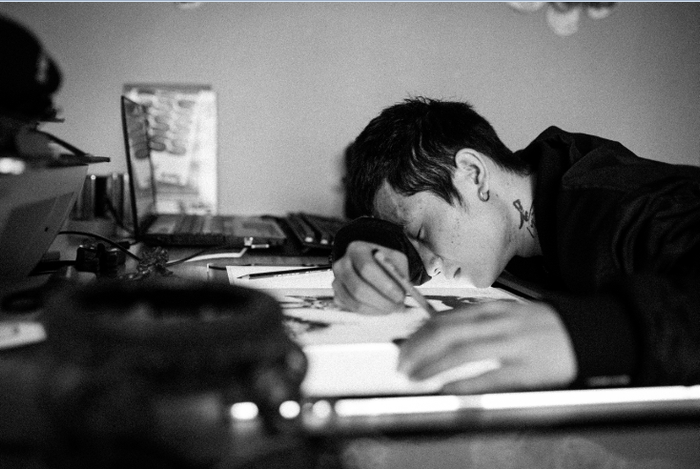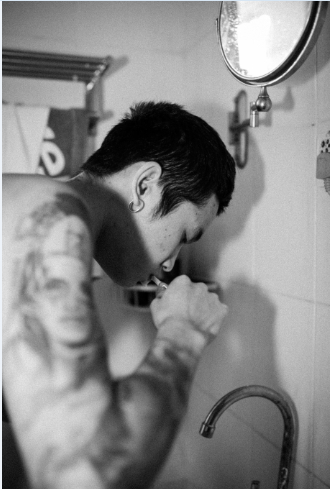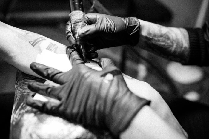 4 / 6 图片为正在文身;初次接触朝壹,得知他是90后,给我的感觉很惊奇!90后的他很有拼劲!很幽默、活泼开朗。