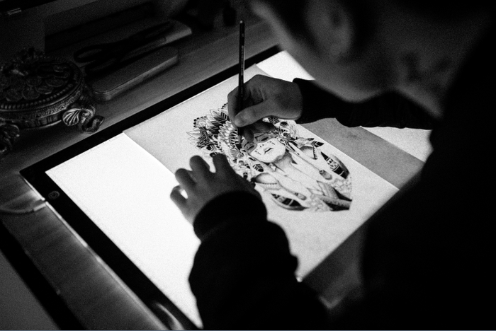 6 / 6 采访海南90后创业小哥朝壹,谈起创业历程:创业的过程真的很艰辛,因为热爱,创立朝壹文身店,坚持到今天。