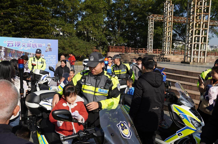 无人机精准投下救生圈,警犬准确找出违禁品,特警战术动作引得掌声雷动,宣传交通安全的小梁警官被小粉丝追星,这一天,云浮市民在精彩的互动体验中感受法治成果中的幸福。
