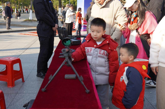 警犬互动区更是热闹非凡。一只训练有素的警犬在训导员指令下,快速从多个行李箱中找出藏有爆炸物的箱子,现场顿时响起热烈掌声。许多小朋友在家长陪同下,小心翼翼地上前抚摸警犬,与这些“无言警卫”亲密接触。