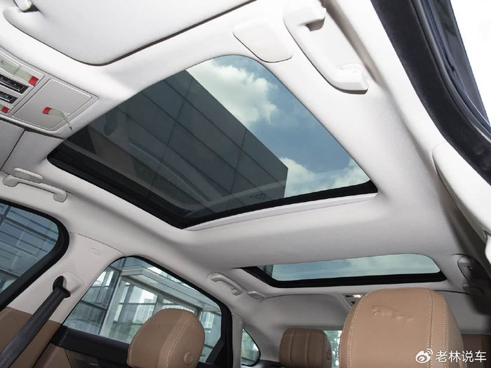 空间方面,得益于捷豹XFL的5102*1890*1456mm的长宽高和3100mm的轴距,该车的后排腿部空间十分宽敞,坐在后排座椅上可以轻松翘起二郎腿,只不过后排地台隆起较高,影响中间乘客的乘坐体验。值得一提的是,该车还配备了两段式天窗,提升了车内的通光率和采光率。