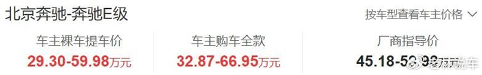 以奔驰E级为例,这款车售价45.18-59.98万元,车主提车价为29.30万元起,标配车型的价格优惠了15.88万元,入门价格已经跌破了30万,让高不可攀的奔驰也有了一丝性价比。当一个豪华品牌和性价比三个字沾边,并不是什么好事,毕竟豪华品牌是有品牌溢价的,当它有了性价比后,就说明它的品牌价值受到了很严重的挑战。当然,这也从侧面说明,如今的消费者购车越来越理性了。