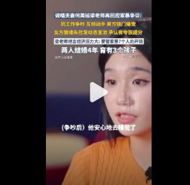 何美延梁淞回应家暴争议,结婚4年育3孩经济压力大
