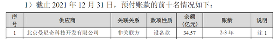 不过从东旭光电回复深交所的年报问询函中可知,截止2021年末,其对曼尼奇科技的预付款余额就达到34.57亿元,当时账龄已有2~3年。