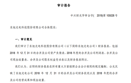 值得一提的是,在2015至2019年期间,给东旭光电做审计工作是中兴财光华会计师事务所。该事务所一直出具的是“标准无保留意见”的审计报告,一直到东旭光电“暴雷”后,才在20年出具了“保留意见”的审计报告。