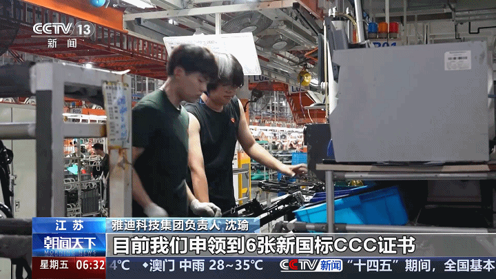 财经无忌观察到,两个月前举行的广州国际两轮车展览会上,头部品牌们就已经率先展出了一批符合新国标的产品。据央视新闻7月的报道,雅迪等品牌也已有多款产品获得新国标3C认证。