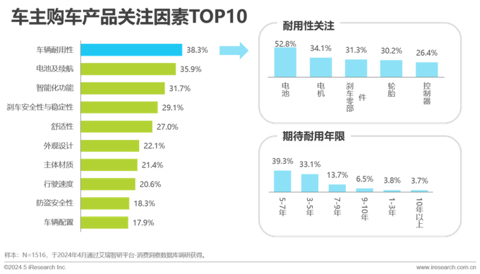 但智能化不是用户购车的决定性因素。艾瑞咨询发布最新用户调研显示,尽管智能化功能持续提升,但电池续航与车辆耐用性还是购车首要考量。