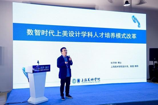 作为会议东道主,上海美术学院设计系教授、博导杜守帅以《数智时代上美设计学科人才培养模式改革》为题,分享了学院的实践与思考。